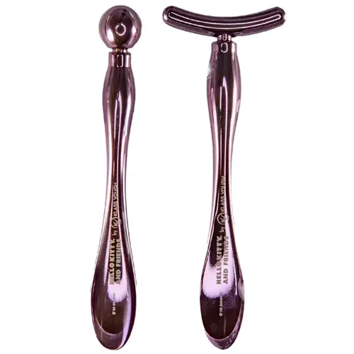 Feito em aço inox, o massageador desliza suavemente sobre a pele. O design ergonômico garante um manuseio firme e confortável, permitindo que você aplique a pressão ideal em cada área do rosto para um resultado profissional.